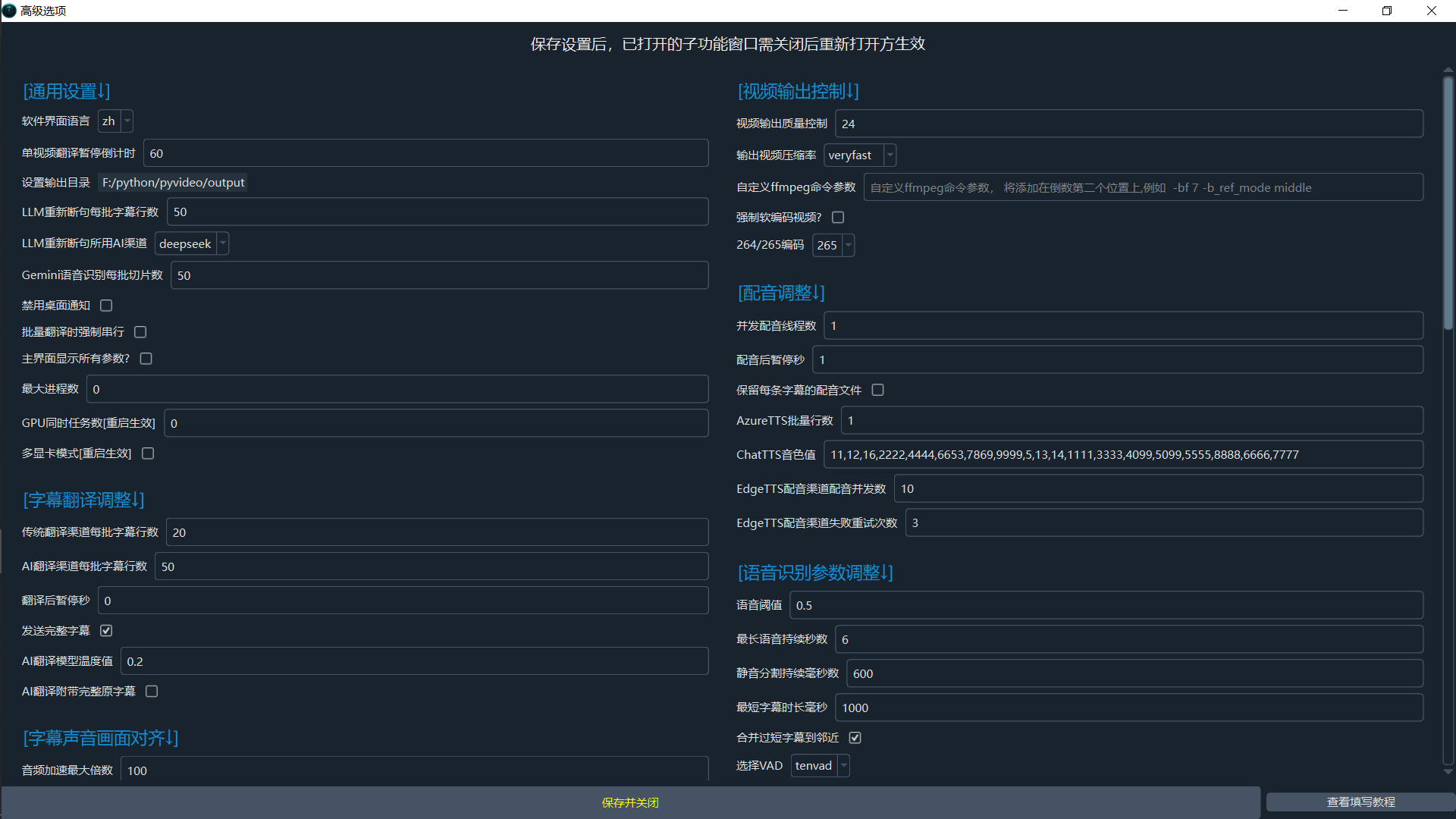 Dubbing Channel: The translated subtitle file will be dubbed using the channel specified here. Supports online dubbing APIs such as OpenAI TTS / Alibaba Qwen-TTS / Edge-TTS / Elevenlabs / ByteDance Volcano Speech Synthesis / Azure-TTS / Minimaxi, etc. Also supports locally deployed open-source TTS models like IndexTTS2 / F5-TTS / CosyVoice / ChatterBox / VoxCPM, etc. Among them, Edge-TTS is a free dubbing channel, ready to use out of the box. Some channels requiring configuration need relevant information filled in underMenu -- TTS Settings -- Corresponding Channel Panel.