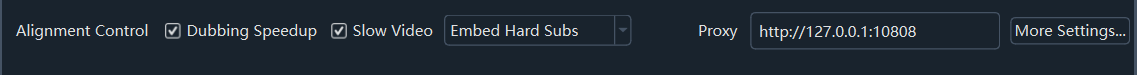 Speed Up Dubbing: If a dubbed segment is longer than the original audio segment, speed up the dubbing to match the original duration.Slow Down Video: Similarly, when a dubbed segment is longer than the video, slow down the playback speed of that video segment to match the dubbing duration. (If selected, processing will be time-consuming, generating many intermediate segments. To minimize quality loss, the overall file size will be several times larger than the original video.)Do Not Embed Subtitles: Only replace the audio, do not add any subtitles.Embed Hard Subtitles: Permanently "burn" subtitles into the video frames. Cannot be turned off; subtitles will be displayed when played anywhere.Embed Soft Subtitles: Embed subtitles as an independent track into the video. Players can choose to turn them on/off. Subtitles cannot be displayed when played on web pages.(Dual): Each subtitle consists of two lines: the original language subtitle and the target language subtitle.- Network Proxy: For users in Mainland China, using foreign services like Google, Gemini, OpenAI, etc., requires a proxy. If you have VPN services and know the proxy port number, you can fill it in here, in a form like
